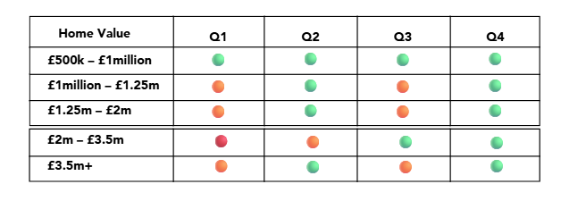 As we saw for much of last year, however, the majority of these viewings and offers are for homes under £1.25 million.